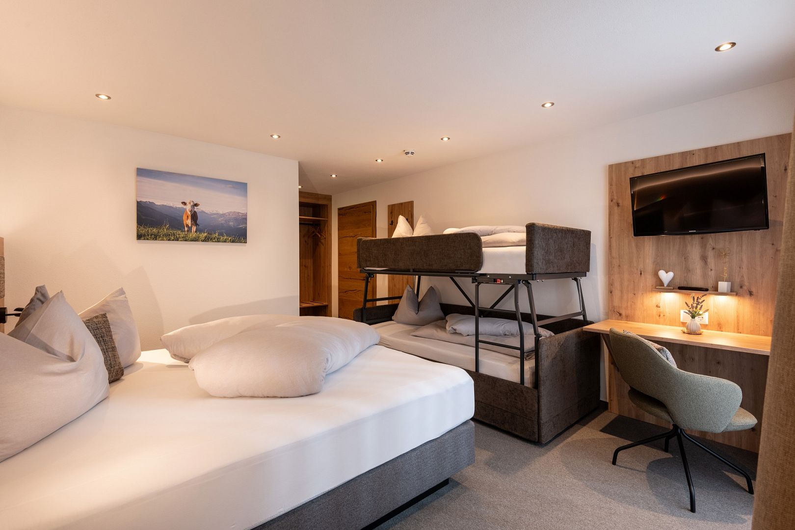 Our family room with balcony offers the perfect combination of comfort and functionality for up to 4 guests. Ideal for families looking for a cozy place to stay in the Tyrolean mountains!